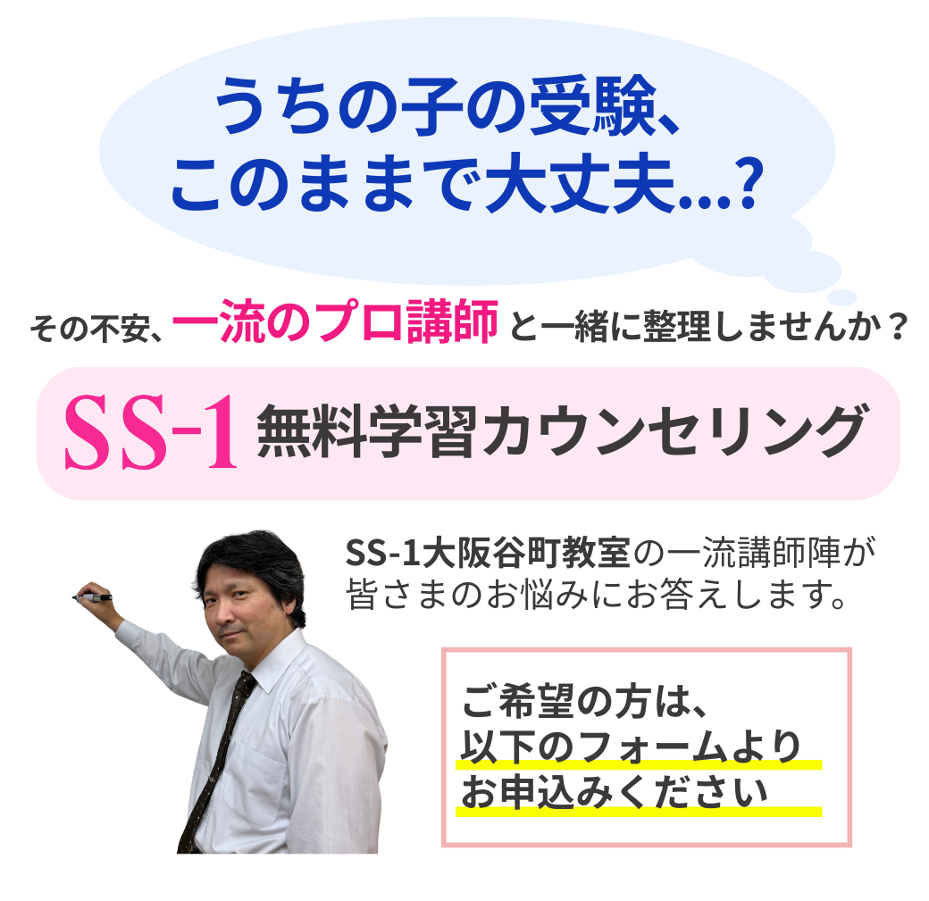 中学受験は、お子様の未来への大切な挑戦です。お子様が心の安心を得て、笑顔で目標に向かえるよう全力でサポートいたします。ぜひ一度、SS-1谷町教室へお気軽にご相談ください。