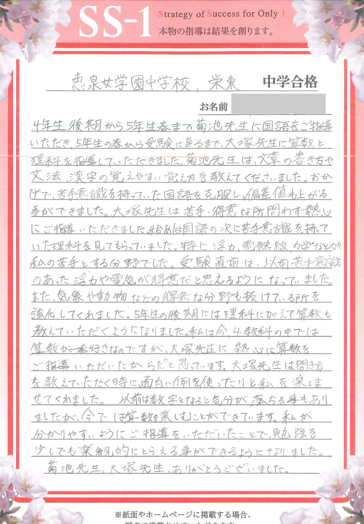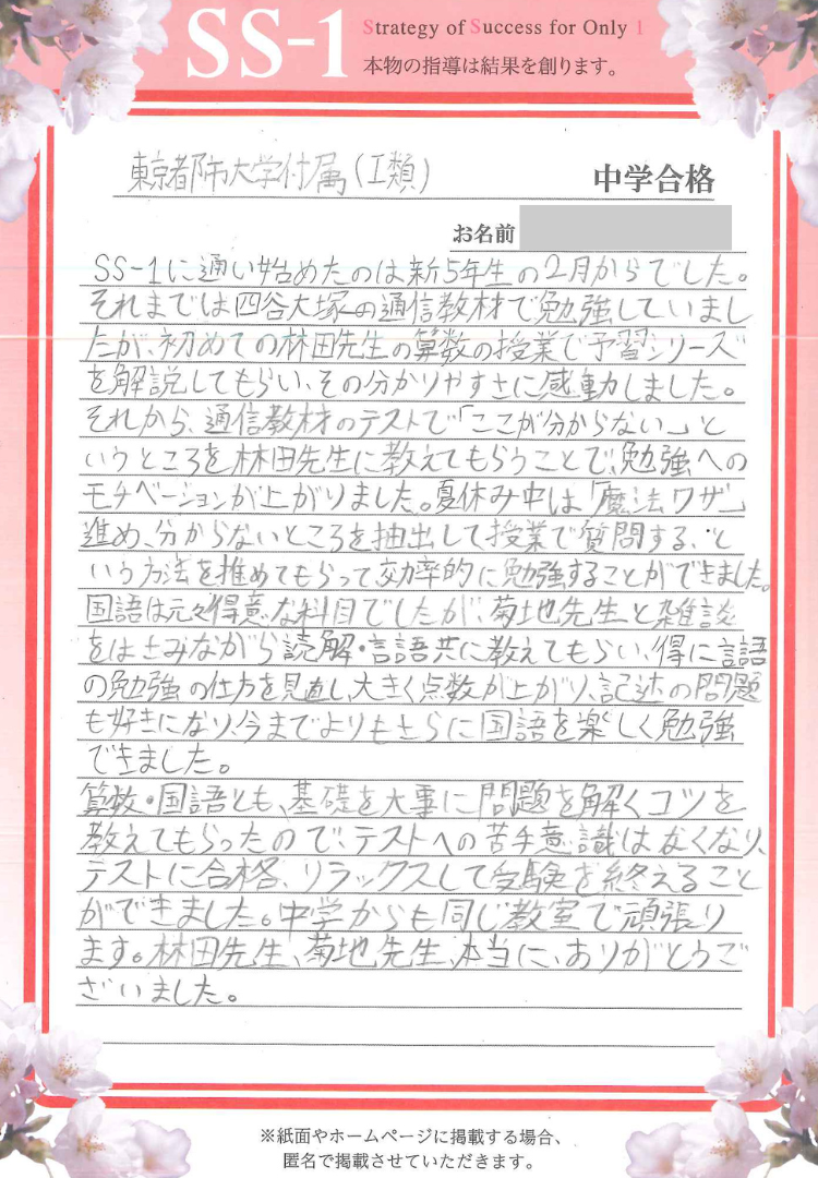 SS-1成城学園前教室で合格をつかんだ皆さんの合格体験談