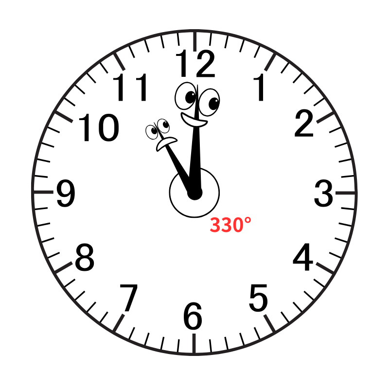 時計の文字盤は、数字1つ分(1メモリ)が 30°です。